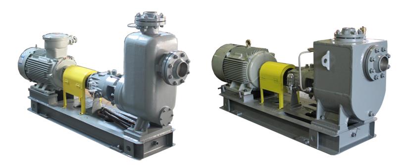 ZX 系列外混式自吸泵是由双层体、抬高的进水弯管、进口逆止阀等组成。双层泵体的内体为涡室,内外体形成的空腔下部为储液室,上部为气液分离室。在储液室下部和涡室的壁厚上开有回流孔。从泵出口排出的气液混合物,在气液分离室进行分离,气体向上通过排气阀排出,液体回流到储液室通过回流孔回流到叶轮出口,再和叶轮出口的气体混合后,排出到气液分离室,如此反复,实现自吸。泵正常运行后关闭排气阀,而回流孔由于涡室内部和储液室的压差很小,回流孔的泄漏不大。